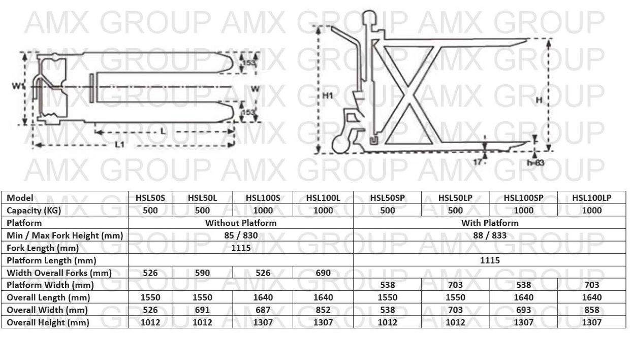 Features manual/foot operated hydraulic operation with easy to use control lever.